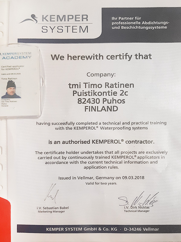 2019 vuonna paikkasimme noin 500 reikää ja pinnoitimme yli 200metriä ränniä kemperolilla.